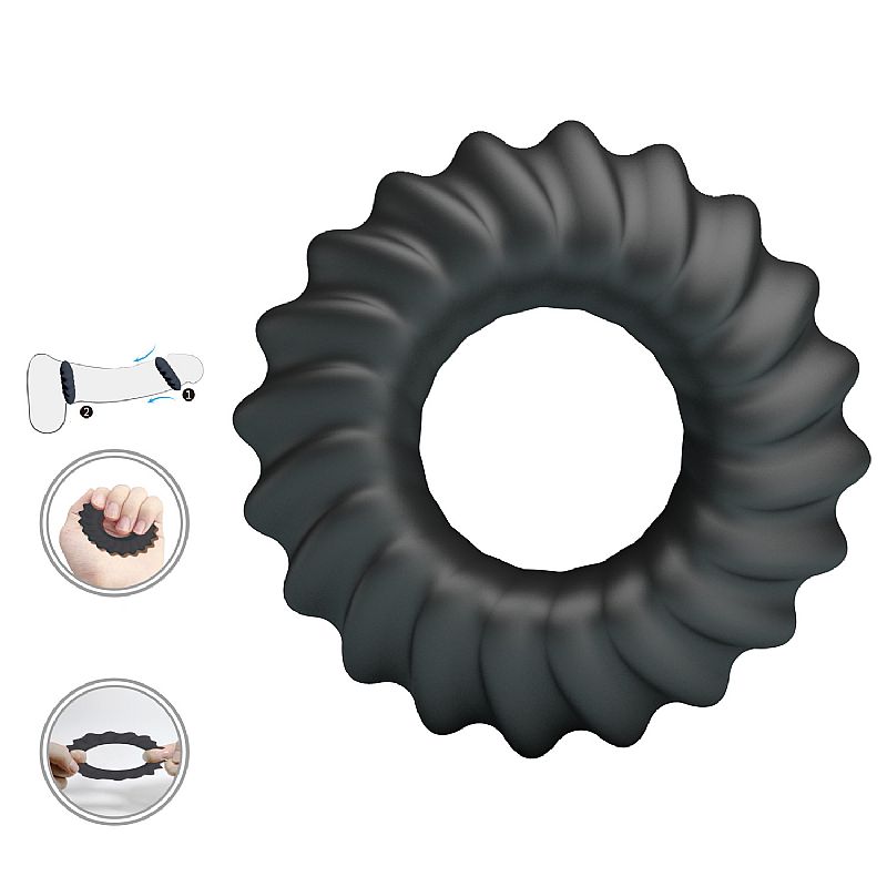 Anel peniano com textura. Confeccionado em silicone é super flexível, adequando-se perfeitamente a você. Produto não tóxico que traz mais segurança e prazer. Ideal para prolongar o tempo de ereção, retardando a ejaculação.