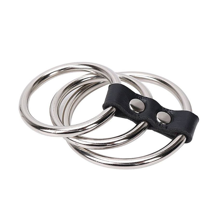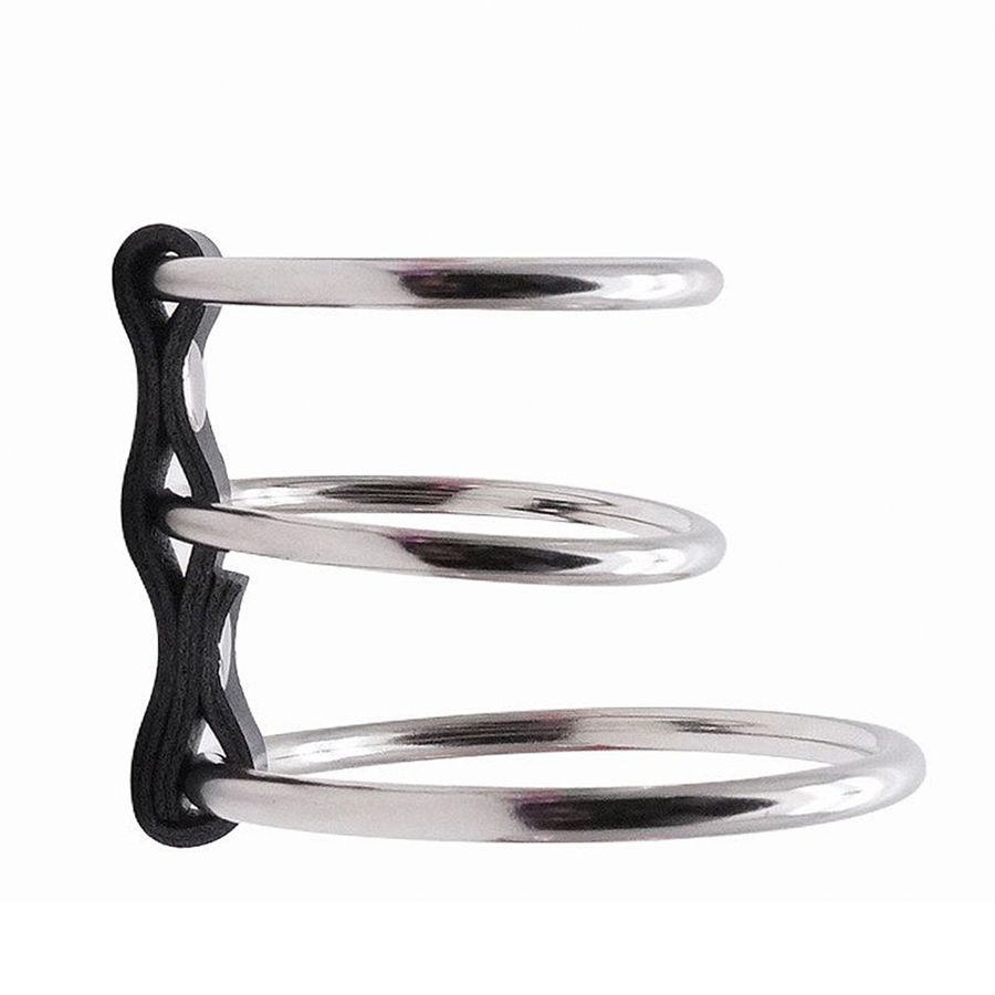 Anel Peniano Triplo em Metal com Tira em Couro Sintético