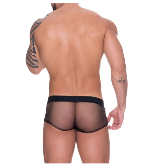 BOXER TULE PRETO TRANSPARENTE SEM FORRO