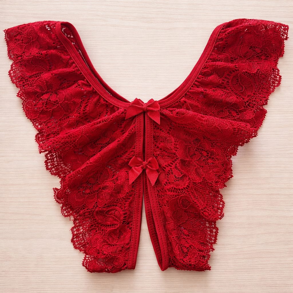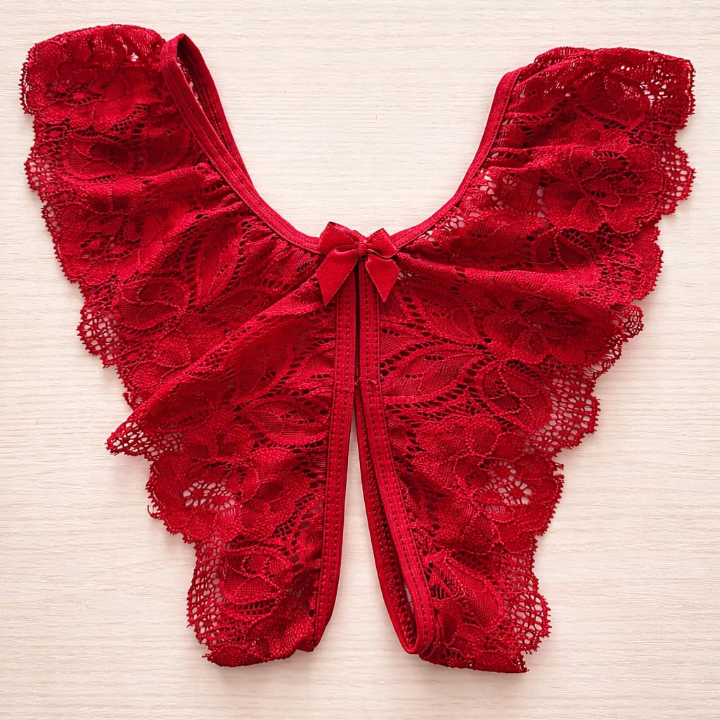 Desperte o desejo com essa calcinha rendada na cor vermelha intensa, perfeita para momentos especiais. Confeccionada em renda delicada com desenhos florais, ela combina transparência e textura para valorizar o corpo com sofisticação e sensualidade.