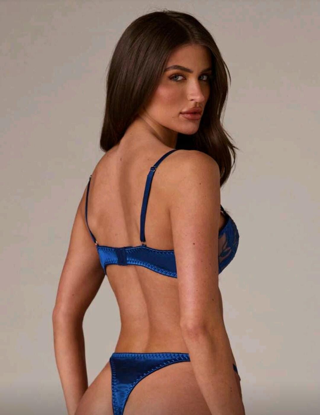 Conjunto de lingerie azul com renda floral e acabamento sofisticado 💙