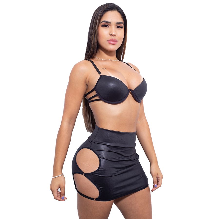 A Hot Love sempre está em busca de tendências que agradam o gosto da mulherada, o conjunto é composto por uma Saia com detalhes vazados na lateral e um Sutiã com Tiras que além de dar a sustentação necessária também oferece aquele volume nos seios que as mulheres tanto amam.
