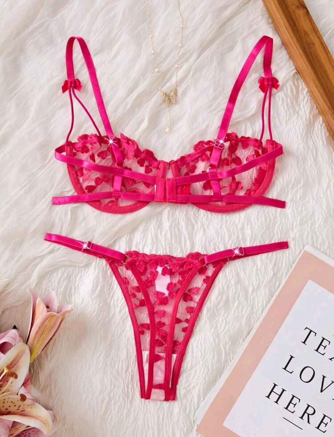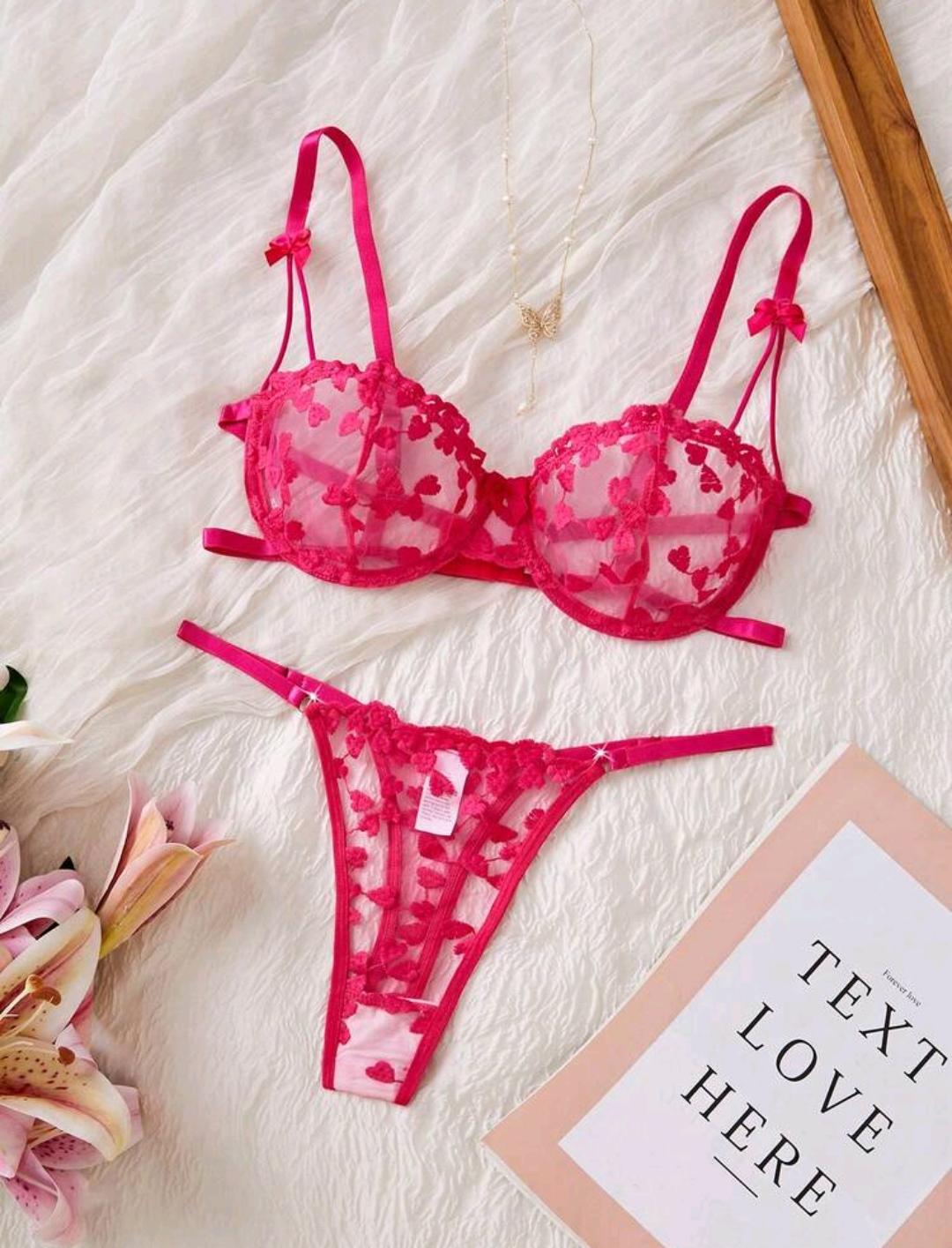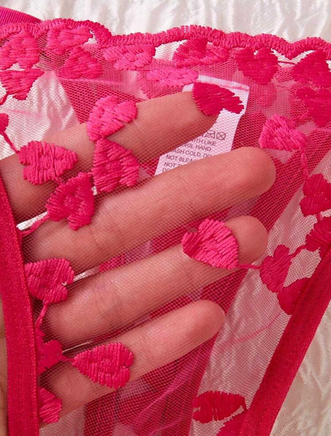 Confeccionado em tule transparente com bordados de pequenos corações, o sutiã possui aro de sustentação que realça o busto, além de alças reguláveis que garantem melhor ajuste ao corpo. O design com tiras cria um visual moderno e sedutor, perfeito para quem gosta de peças diferenciadas.