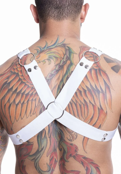 HARNESS ELASTICO BRANCO COM ILHOS E ARGOLA DE METAL