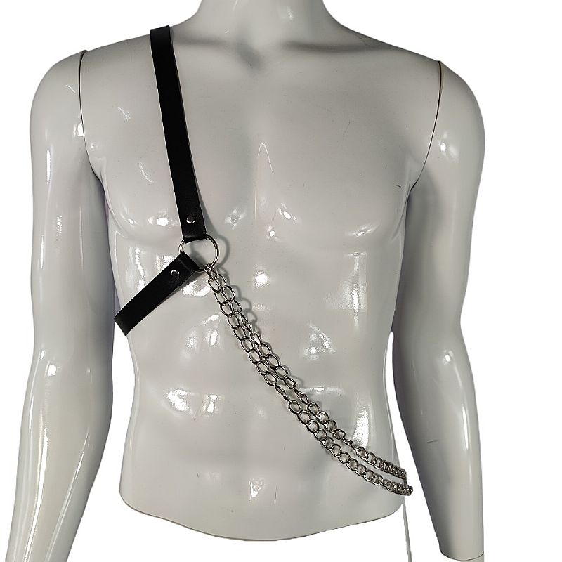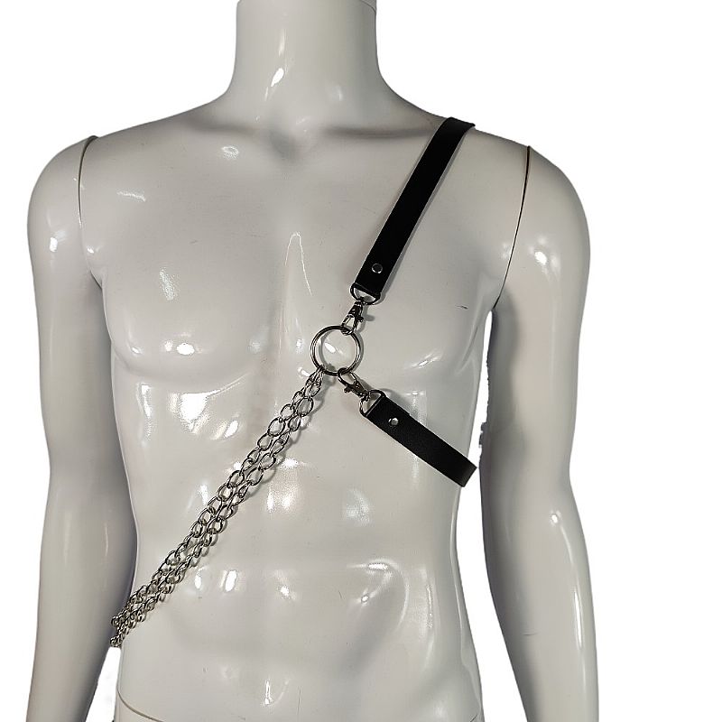 Harness Masculino em Couro e Corrente – 2cm X 100cm