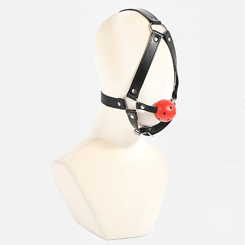 Silencie seu amante com esta luxuosa mordaça com bola e suporte de cabeça.
