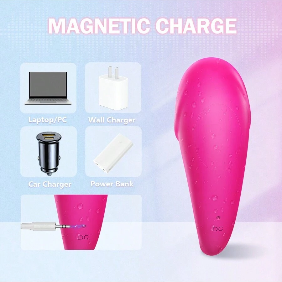 Vibrador de casal em silicone macio com formato glande. Possui toque suave e aveludado. Possui aplicativo de celular para controlar a distancia, carregamento USB e 10 modos de vibração.